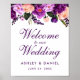 Välkomstskript för ultraviolett Lila Blommigt Vattenfärg Bröllop Välkomsthälsning Poster Lila