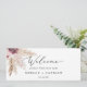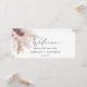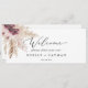 Välkomsthuvudet för den här boho pampas hängande sätesdiagrammet är perfekt för en sommar bröllop. Blommigtens vattenfärgsdesign har en bohemisk burgundi och rosa blommor med sprit av neutralt pampas-gräs och guldtorkade handflatan-löv. Kortet skrivs ut på framsidan och baksidan (dubblan). Kontrollera om det finns några koordinerande platskort för bordsnumret.