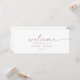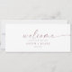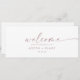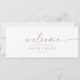 Detta moderna välkomsthuvud för sittplatserna i ro är perfekt för ett minimalistiskt bröllop. Den enkla designen i rosa ros guld färg har en unik industrietterande typografi med modern boho stil. Anpassade i alla färg. Behålla designen minimal och elegant, som den är, eller anpassa den genom att lägga till egna bilder och teckningar. Kortet skrivs ut på framsidan och baksidan (dubblan). Kontrollera om det finns några koordinerande platskort för bordsnumret.