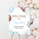Välkomstsignatur för blå donuts och blöjor poster
