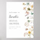 Välkomstsignatur för Modern Blommigt Möhippa. Den här eleganten modern | Tecknet för möhippa av vintage har en vacker, handmålad rosa, dammblått och sage-grönt pressad blomma med grått-typografi. Matchande objekt finns i Möhippan Fintvätt av pressade Wildblommor.