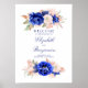 Välkomstskylt poster av marin och rosa blommigt bröllop