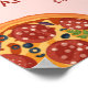 Den roligt pizzakematoden innehåller vattenfärgspizzaillustrationer, handskriven konturtext och ljusa färger. Baksidan har ett rött och vitt plaid mönster, som påminner om italienska restauranger och pizzarestauranger.