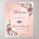 Elegantens möhippa för och guld blommigt välkomstskylt med ett guld-geometriskt ram som är förankrat med rosa ros och grönt. Matchande objekt är tillgängliga. Anpassa enkelt onlinen.