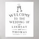 Välkomna gäster till bröllop med vår söta chic poster, tillgängliga i flera storlekar. Utformningen har svart typografi på skarp vit med "välkommen till bröllop av" och ditt namn och bröllop-datum nedanför, kompletterat med ett par illustrerade champagneflukter gått med av ett brinnande hjärta.