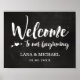 Välkommen till bröllop poster med ett trendig-penselskript mot en kriterlig bakgrund.