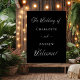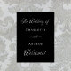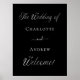 En svart bakgrund. Med texten: Välkommen till Bröllop av. och Välkommen till Anpassa och lägg till namn.