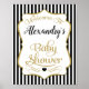 Ett välkomsttecken för elegant babydusch med svart vit rand och guld glitter-trim med skräddarsytt namn för mamma att bli. En söt guld snurrande design med ett hjärta i mitten gör att den här babyduschen är ett underbart sätt att presentera gäster i din formella babydusch. Fler svarta och guld finns i min butik.