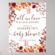 Denna moderna, eleganta rustika höstens vattenfärg välkomstskylt för baby shower kan anpassas med din information i stilfull burgundertypografi. Designad av Thisisnotme©