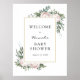 Välkomstskylt för baby shower med eukalyptus och b poster