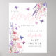 Välkomstskylt för baby shower med liten fjäril och poster