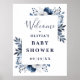 Välkomstskylt för baby shower med marinblå lantlig poster