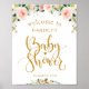 En underbar modern blommigt med underbar guld-text och målade blommor med vattenfärg. Texten och färg på denna välkomstskylt för babyduschen kan redigeras.