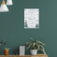 En liten snöflinga är på väg. Välkomstskylten poster "Babydusch blå vinterstartsskylt" med snöflingor och gräs träd.