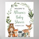 Välkomstskylt för babyduschboskap i skogsområden poster