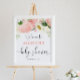 Välkomstskylt för babyduschen i blommigt rosa guld poster