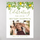 Minnesposter för begravning med akvarell med gröna blad, citroner, ett foto av din älskade, deras namn och datum.