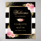 Välkomstskylt för Black White Guld Rosa Blommigt B Poster