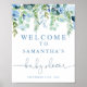 Välkomstskylt för blått blommigt-babydusch poster