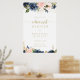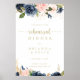 Denna välkomstskylt vid guld-middagen i blommigt är perfekt för en rustisk bröllop-repetition. Utformningen har vackra, handmålade mörk blått, blå, marinerade, rosa, , guld-blommor och grönt bladverk.