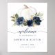 Blommigt Navy Blue Pumpkin Fall Wedding Welcome Sign. Blommigt Blue Bröllop Välkommen Poster