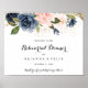 Vågräts välkomstskylt vid middagen i blommigt är perfekt för en modern repetition i bröllop. Utformningen har vackra, handmålade mörk blått, blå, marinerade, rosa, blommor, blommor från guld och blad av grönt, buntade i elegant bouquets.