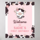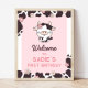 Välkomna gästerna med vår berömvärda välkomstskylt från Kow Birthday! Med en baby-ko i rosa gränsar tecknet till en uppspelande ko och daisy. Perfekt för speciell beröring vid inträdet i party, det här välkomsttecknet anger tonen för ett roligt kotemerat firande!