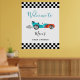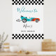 Välkomstskylt för Blue Tävling-bilens babyskor Poster