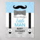 I kärlek välkomnar detta lilla manliga babyduschtema ett tecken på mustasch, buktid och suspenderare i ett baby blue program och grått färg. Matchande inbjudan och dekorationer i arkivet.