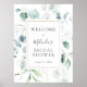 Välkomstskylt för bröllopsdusch i guld med eukalyp poster