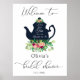 Välkomstskylt för bröllopsdusch med blomstertepart poster