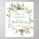 Välkomstskylt för bröllopsdusch med grönska rosa g poster