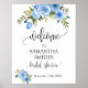 Välkomstskylt för bröllopsfest blå blomsterbröllop poster