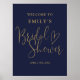 Välkomstskylt för bröllopsfest i marinblått och gu poster