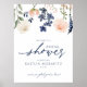 Välkomstskylt för bröllopsfest i peach och marinbl poster