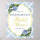 Välkomstskylt för bröllopsfest med blåa hydrangeor poster
