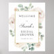 Välkomstskylt för bröllopsfest med eukalyptus och poster