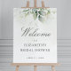 Välkomstskylt för bröllopsfest med eukalyptusgröns poster