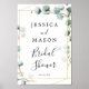 Välkomstskylt för bröllopsfest med eukalyptusgröns poster
