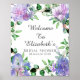 Välkomstskylt för bröllopsfest med lila hydrangeor poster