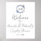 Välkomstskylt för bröllopsfest med monogram och bl poster