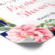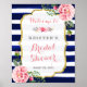 Välkomstskylt för bröllopsfest med rosa blommor och marin rand med guldglitterram poster.