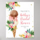 Välkomstskylt för bröllopsfest med sommarblommor och glass