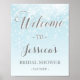 Välkomstskylt för bröllopsfest med vintervett blå poster