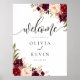 Välkomstskylt för Burgundy Blommigt Bröllop Poster