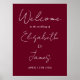 Denna burgundröda minimalistiska elegant-skript bröllop-välkomstskylt kan vara personlig med dina uppgifter i chicens typografi. Designad av Thisisnotme©