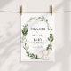 Välkomna gäster till din babydusch med denna vackra poster, som har en andedräkt av eukalyptus löv och grönska med en vattenfärgad grått-elefant. Lägg till hedersgästens namn, duschdatum och anpassningsbarnas välkomsttext med hjälp av fält.