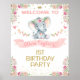 Välkomstskylt för Elephant Blommigt Första födelse Poster