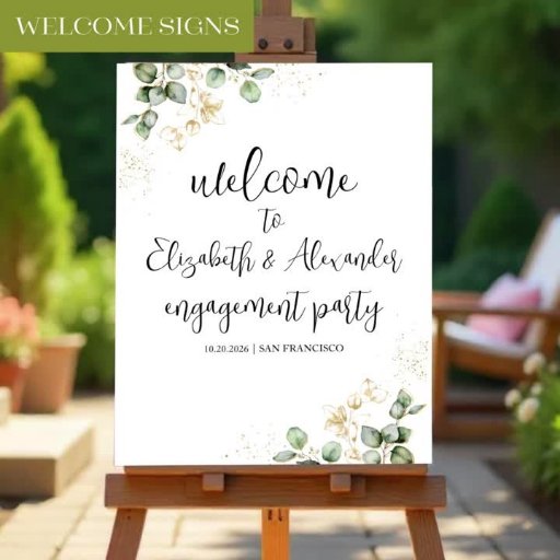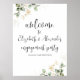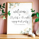 Välkomstskylt för förlovningsfirande med grönska t poster