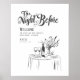 En funky och ett litet, handritat, repetitionsskylt poster: "Natten före". Det här tecknet är ett snabbt och unikt exempel på ett matande bord med vin, blommor, tallrikar, ljus med mera. Alla färger är anpassade, vilket gör att du kan välja ett nyans för att poster eller skapa en färg duo, t.ex. röd text och blå bord, som passar perfekt för stil.